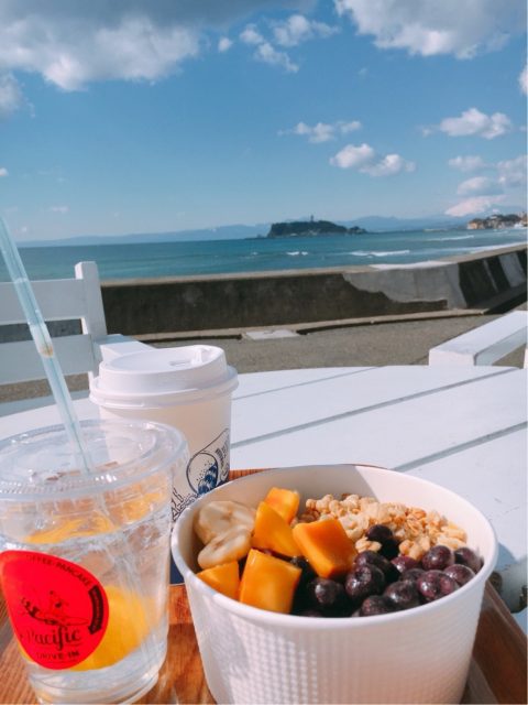 外にはテラス席があり、西に江の島、富士山、晴れていれば伊豆半島、伊豆大島まで見えます。