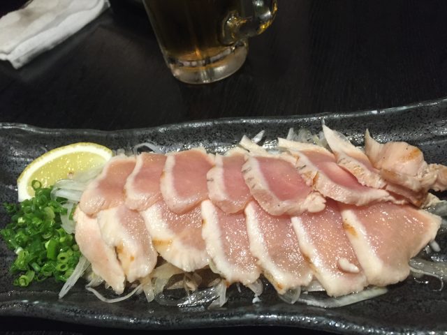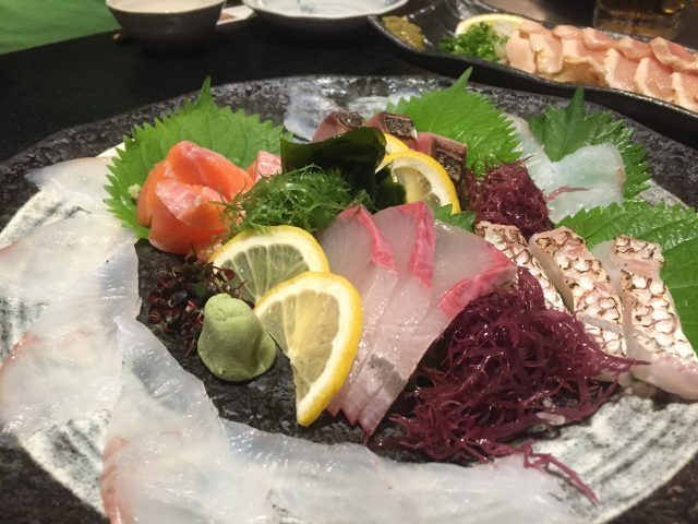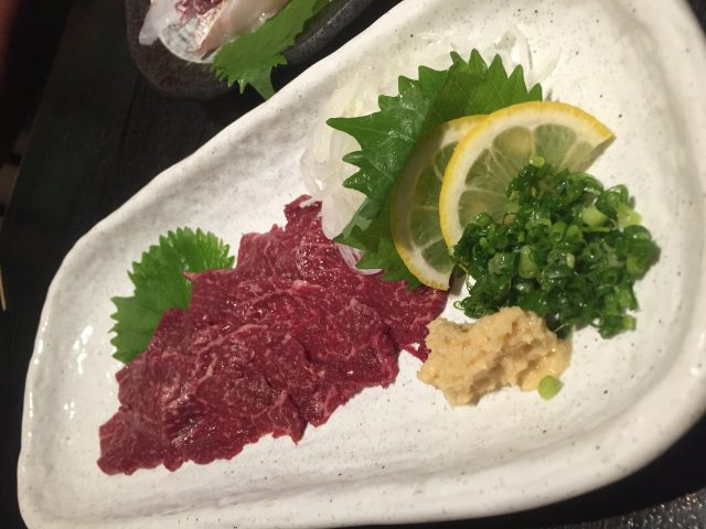 最初に馬刺し、お魚のお造り、鶏のたたきがでてきました。