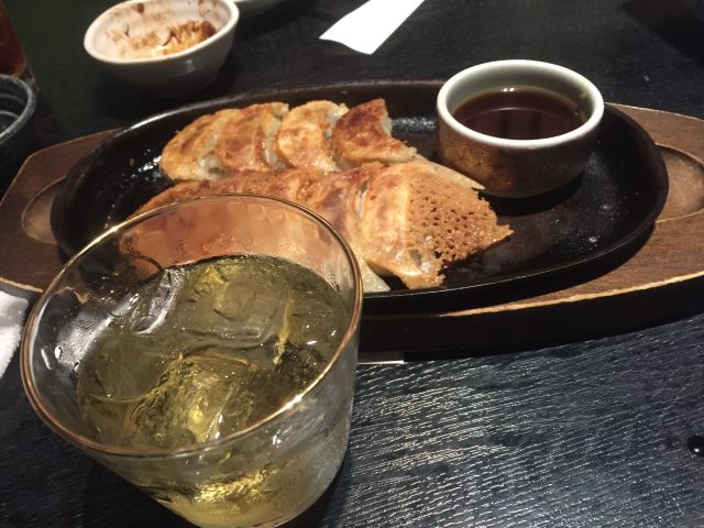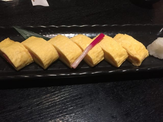 卵焼きには明太子が入っています。博多名物一口餃子、締めはもつ鍋です。