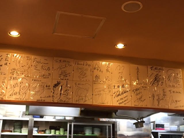 有名人の方々のサインが、壁にぎっしり貼ってあって、私たちもワクワクしながら注文しました!