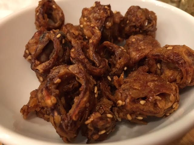冷たいカラ甘な、豚のもつの唐揚げでした!
