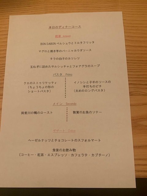 今回はコースで行ってきました!こちらがメニューです!