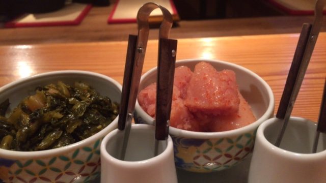 ここは、博多名物の高菜漬けと明太子食べ放題なんです。