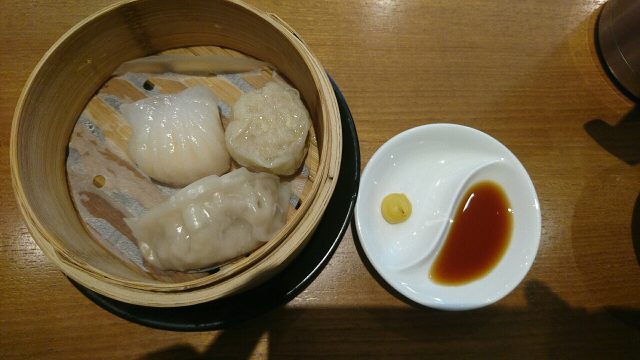 遅れて出てきたのが点心3種、エビ餃子、シュウマイ、蒸し餃子?でしょうか。
