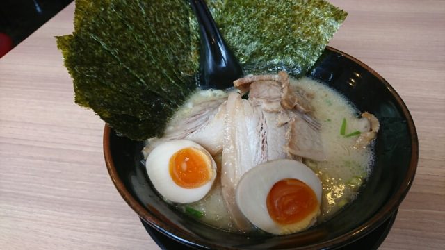 味玉丸1個と、味付けメンマと厚さが約1㎝ほどのチャーシューとのりです。