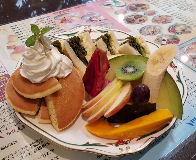 ホットケーキを頼んでもフルーツと生クリームたっぷり♪