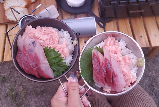 バーベキューしてるのに、海鮮丼🐡 贅沢~~