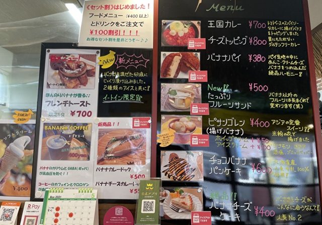 メニューもバナナを使ったものばかり!