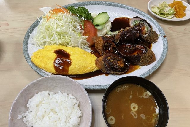 なぜかランチメニューはハンバーグやチキンカツ、串カツ推しなので