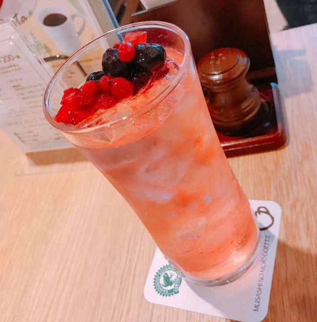 こちらのパンケーキはパンケーキ自体もほんのりあまくふっわふわでとってもおいしかったです こちらはセットドリンク +380円 ラズベリーミックスソーダ