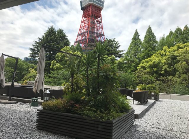 広い店内に少な目の席数なのがとてもよかったです 東京タワーの真下にあります 店内からの景色、緑が美しくいいですね