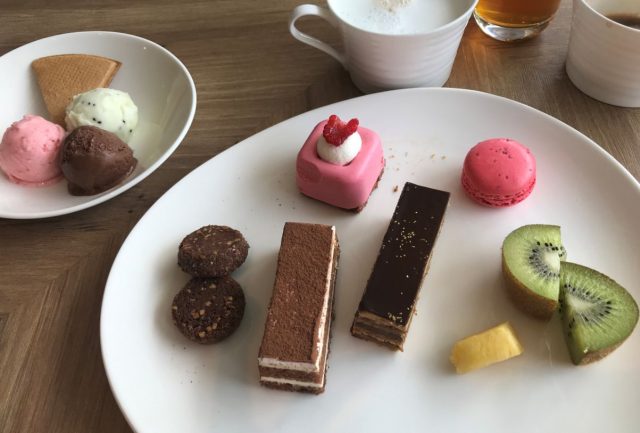 フルーツとアイス、かにの盛り付けが特に美しかったです