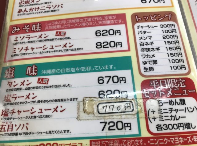 連れはタンメン 670円 おいしかったそうです