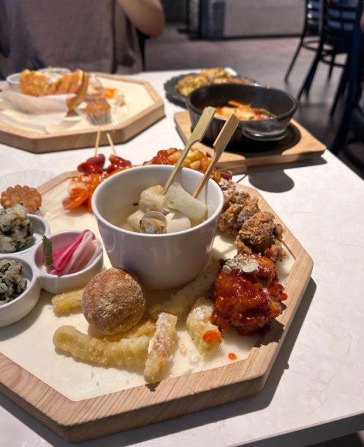 特にカリカリのチキンに3種類のソースがかかっていてどれもおいしくてしかもできたてあつあつがきてさらに選べるサイドメニューのチヂミもおいしかったです