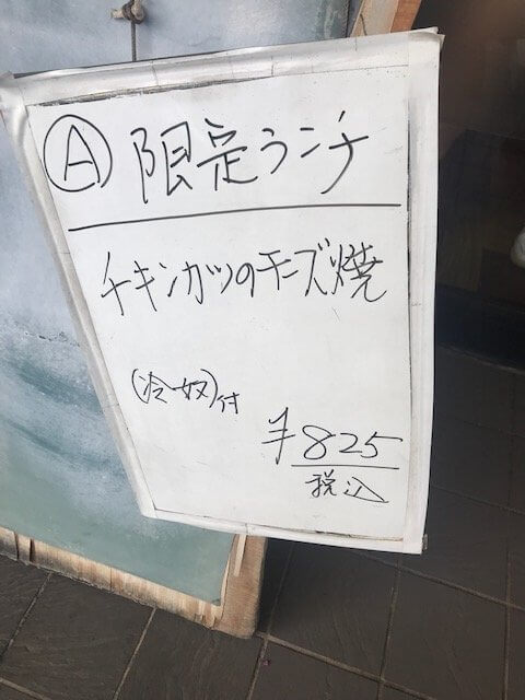 すごく迷ってステーキ定食と限定ランチのチキンカツのチーズ焼にしました