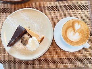 スイーツ3点盛りとカプチーノにしました☕