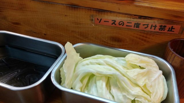 味が足りない場合はサービスで出してくれるキャベツにソースを救ってお皿に持っていくとソースが串揚げに付けられますw