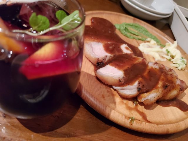 ボリュームのあるお料理がきたので、お酒好きの同級生がオススメするサングリアを頂きました!