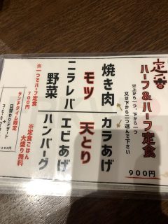 定番、ハーフ&ハーフ定食。上と下から1品ずつお選びくださいだって!?