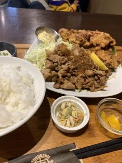 悩みに悩んで、唐揚げと焼き肉定食。と野菜定食。