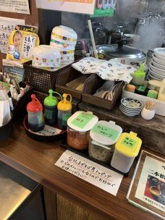 カウンターには、お好み調味料がずらり。