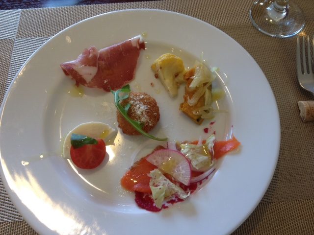 前菜は生ハム、サーモン等どれも少しずつ手が加えられていておいしかったです