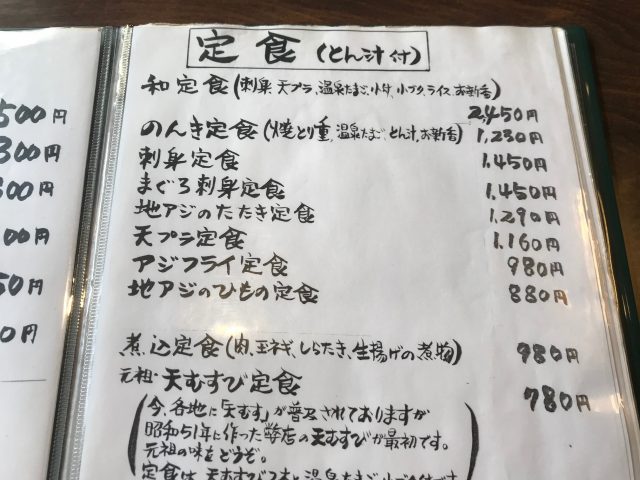 今回は地アジのたたき定食1290円を注文しました。