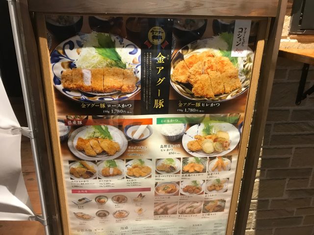 看板メニューは金アグー豚のとんかつ、ウマい。一瞬クセが無さそうで、噛みしめていると、じわじわくる。