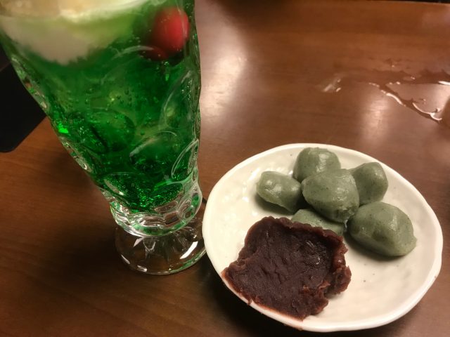 折角なのでお団子とクリームソーダをいただきました。