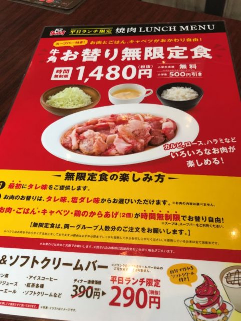 以前は1980円でサイドメニューなんかもある食べ放題がありましたが、最近なくなり、1480円でお替り無限定食になったようです