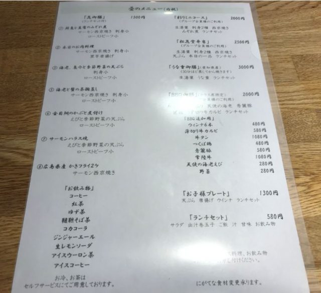 お昼のお膳メニュー 花御膳(ランチセットと小鉢2品付) 1500円 私たちは遅くいくのでだいたいかぶと焼きがうりきれなことが多いです