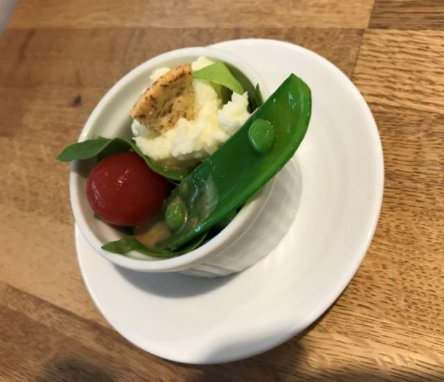 前菜もちょっとしたお野菜とディップですが湯むきしたプチトマトやら丁寧な仕事ですね