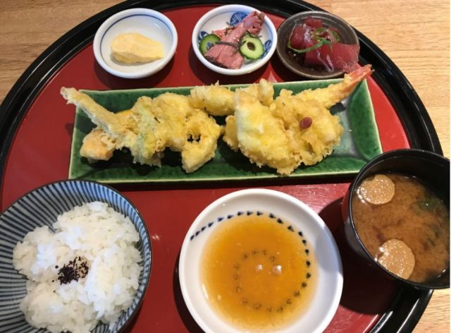 ③海老 魚介と季節の野菜の天ぷら 小鉢のローストビーフとお刺身はもちろん天ぷらもおいしかったです