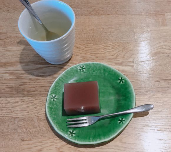 デザートの羊羹は甘さ控えめでさっぱしてておいしいです