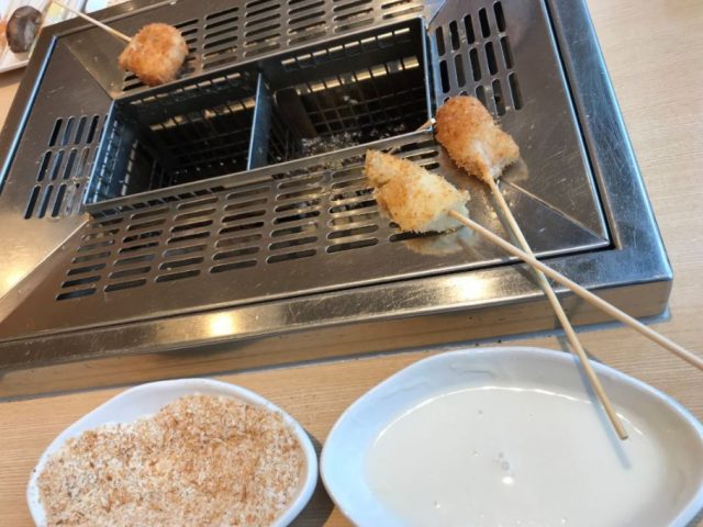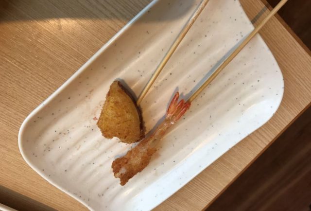 こちらのお店はなんといっても自分で串揚げがつくれちゃう楽しさがたまらないですね、といいつつ単価が高そうなものを狙ってしまう、、、