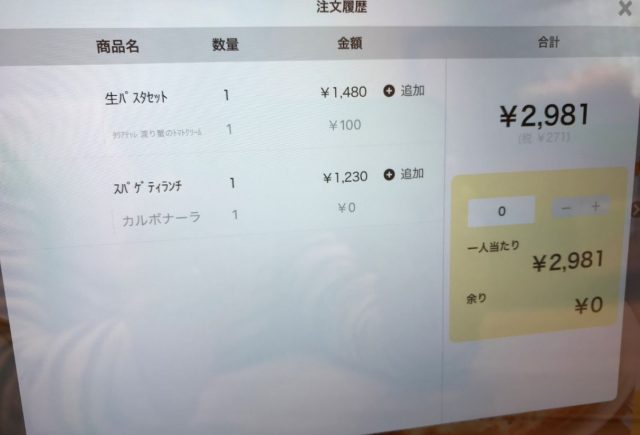 パスタはもちもちでお味もちょうどよくおいしかったです