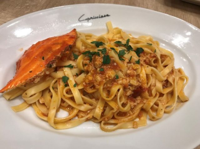 私はワタリガニのトマトクリームの生パスタセット 1480円