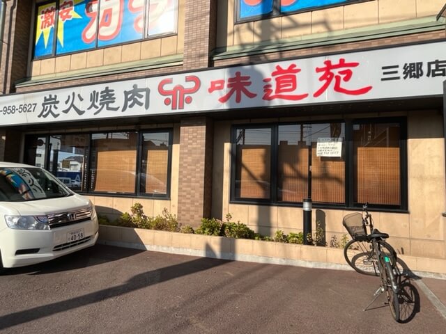 三郷駅から徒歩3分の味道苑さん。駐車場もありますがスペースに限りがあり駐車するには運転初心者にはハードルが高いかも…