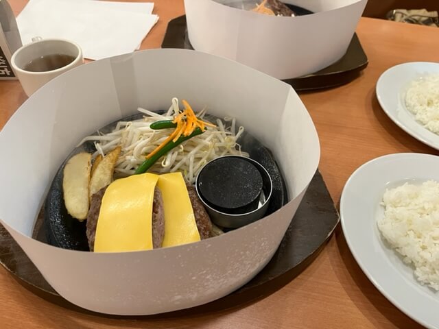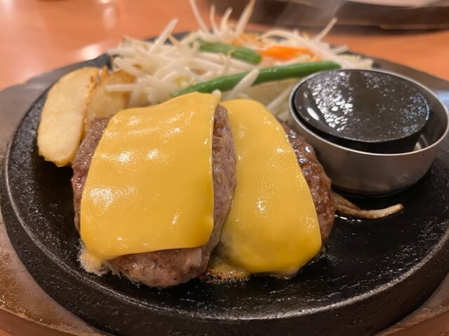 今回は、定番のはせ川ハンバーグ170Gをオーダー。100円オプションでチーズを追加しました。