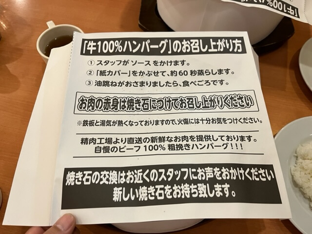 鉄板ジュージューで来るので、ソースをかけて、紙の蓋をして少し蒸してからいただくようです!