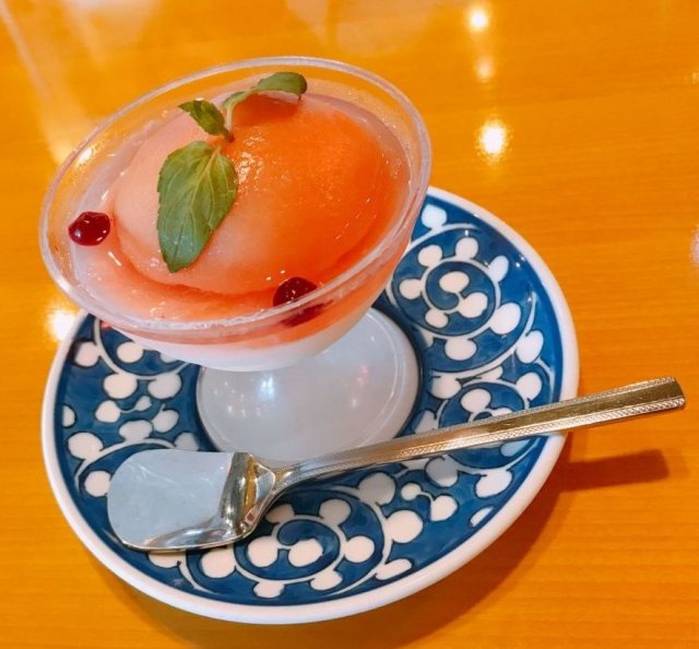 デザートもどれもおいしいそうですごく迷いましたが、私は桃の絹ごし杏仁豆腐を注文しました。