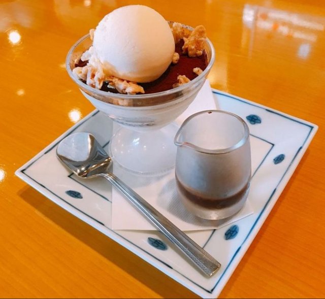 連れは完熟バナナのふわとろティラミス、冷たいチョコレートソースがけもめちゃうまです(*’ω’*)