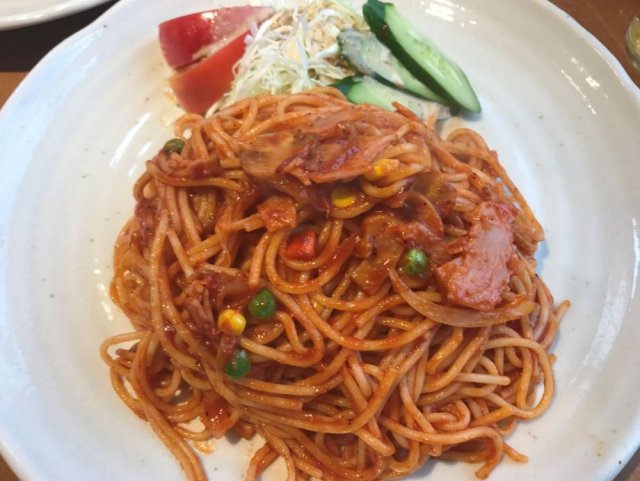 ちょっと調べたところナポリタンが有名なようなのでナポリタンにしてみました