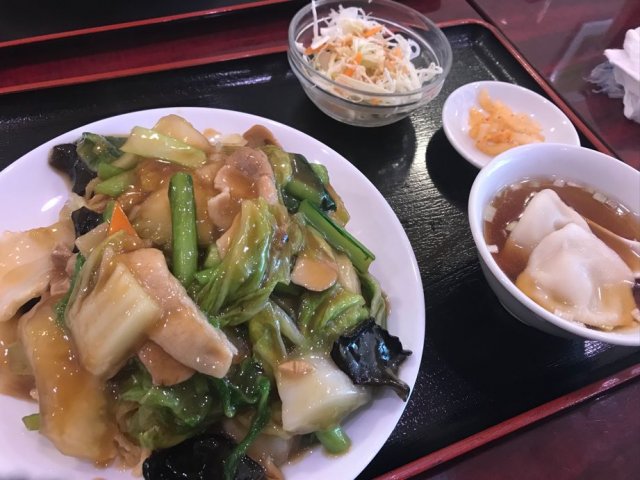 Bの五目かた焼きそば+水餃子スープ 748円 にしました