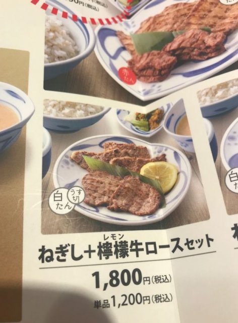 連れは、ねぎし+檸檬牛ロースセット 1800円(税込)