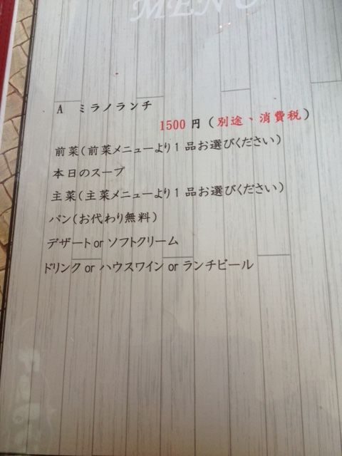 ランチは3種類 以前はミラノランチにしたら ボリューミーな前菜、パンお代わり自由で残してしまうくらいだったので、今回はナポリランチにしてみました