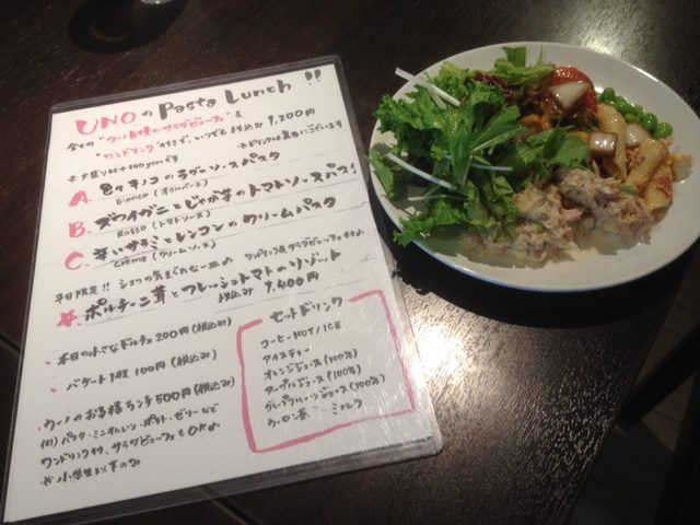 日曜日でしたがランチメニューもありました メニューはこちら パスタ サラダビュッフェ ドリンク がついて 1200円 平日限定メニューもあるようなので今度はそちらも試してみたいですね!