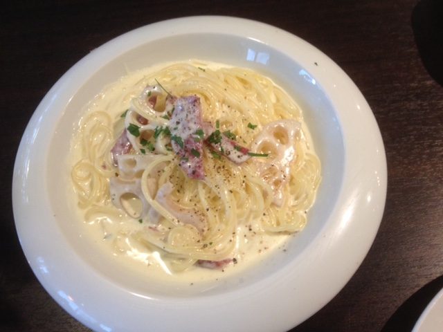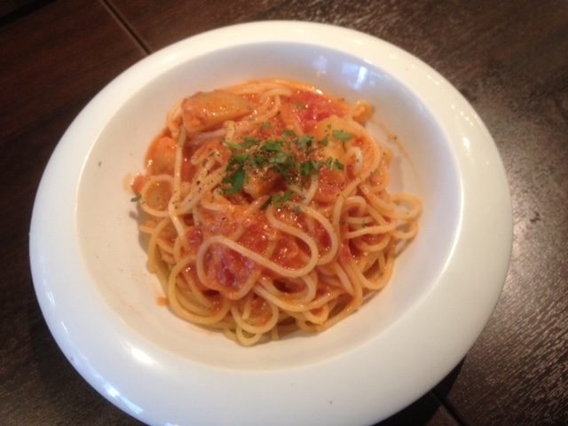 私はBのズワイガニとじゃが芋のトマトソース、お友達はCのからいサラミとレンコンのクリームパスタにしました