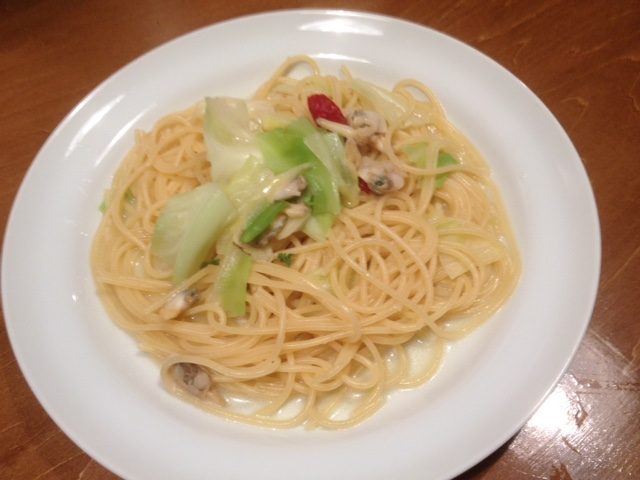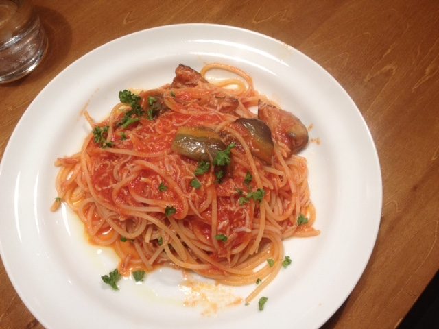 私はシラスとなすのパスタ、お友達はあさりとキャベツのペペロンチーノ 大盛にしなくても具たくさん、結構な量でおいしかったです