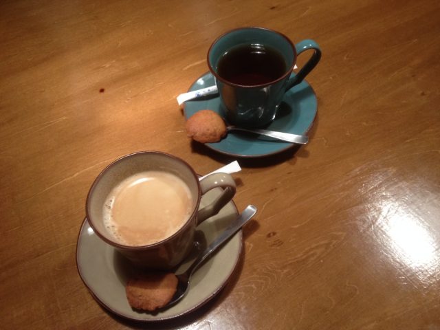 食後は私はホットコーヒー、お友達は紅茶 かわいいクッキーもついて コーヒーは濃いめでおいしかったです